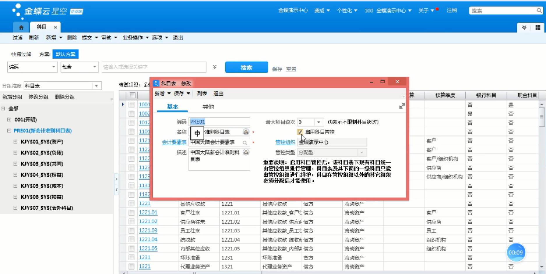 • 金蝶云科目分配