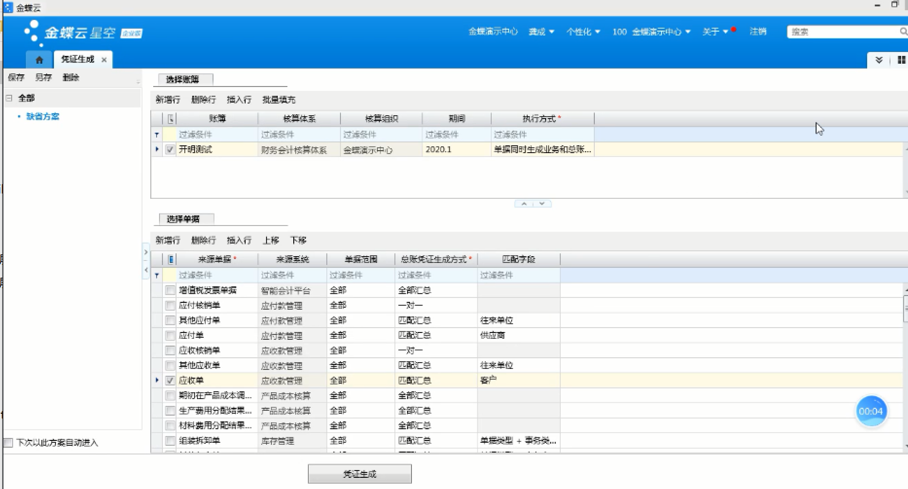 • 业务单据生成凭证