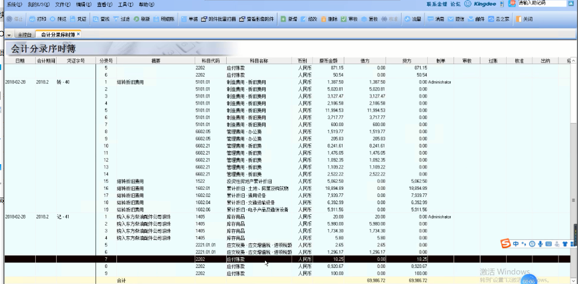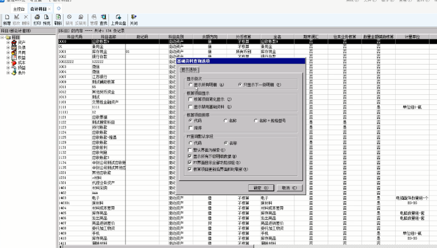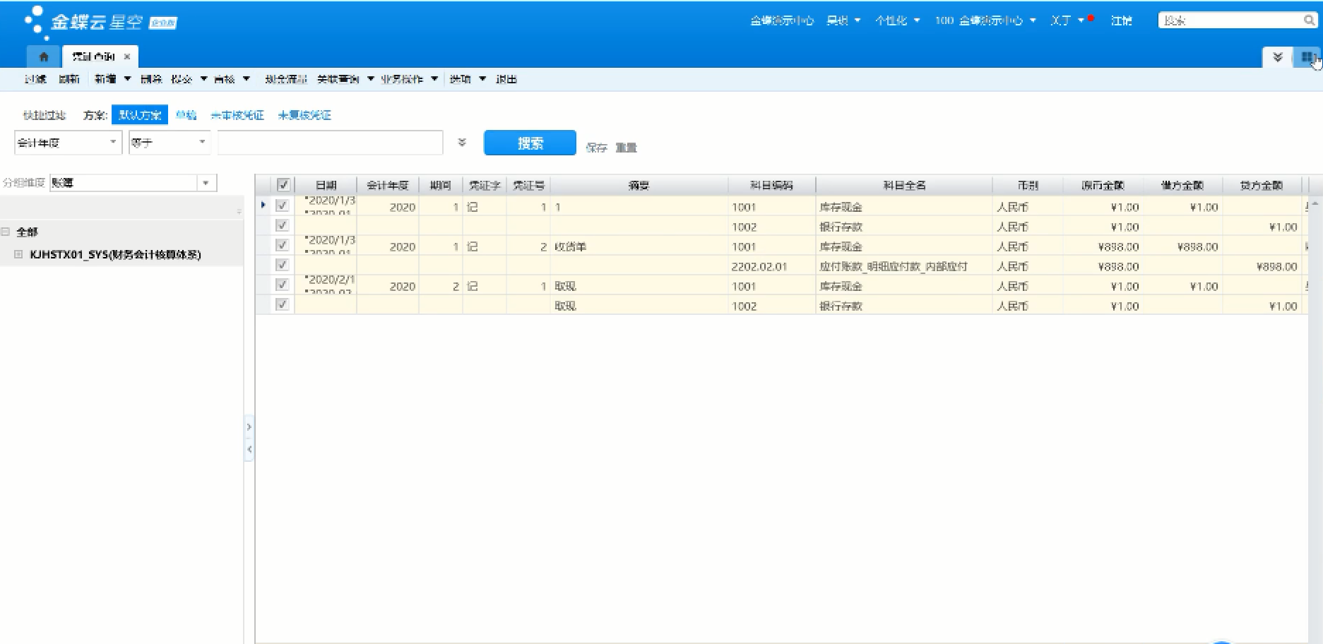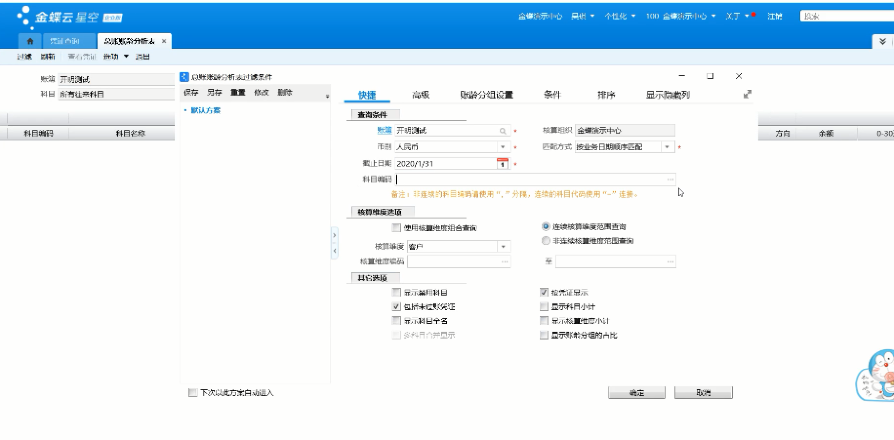 • 会计分录序时簿显示核算项目