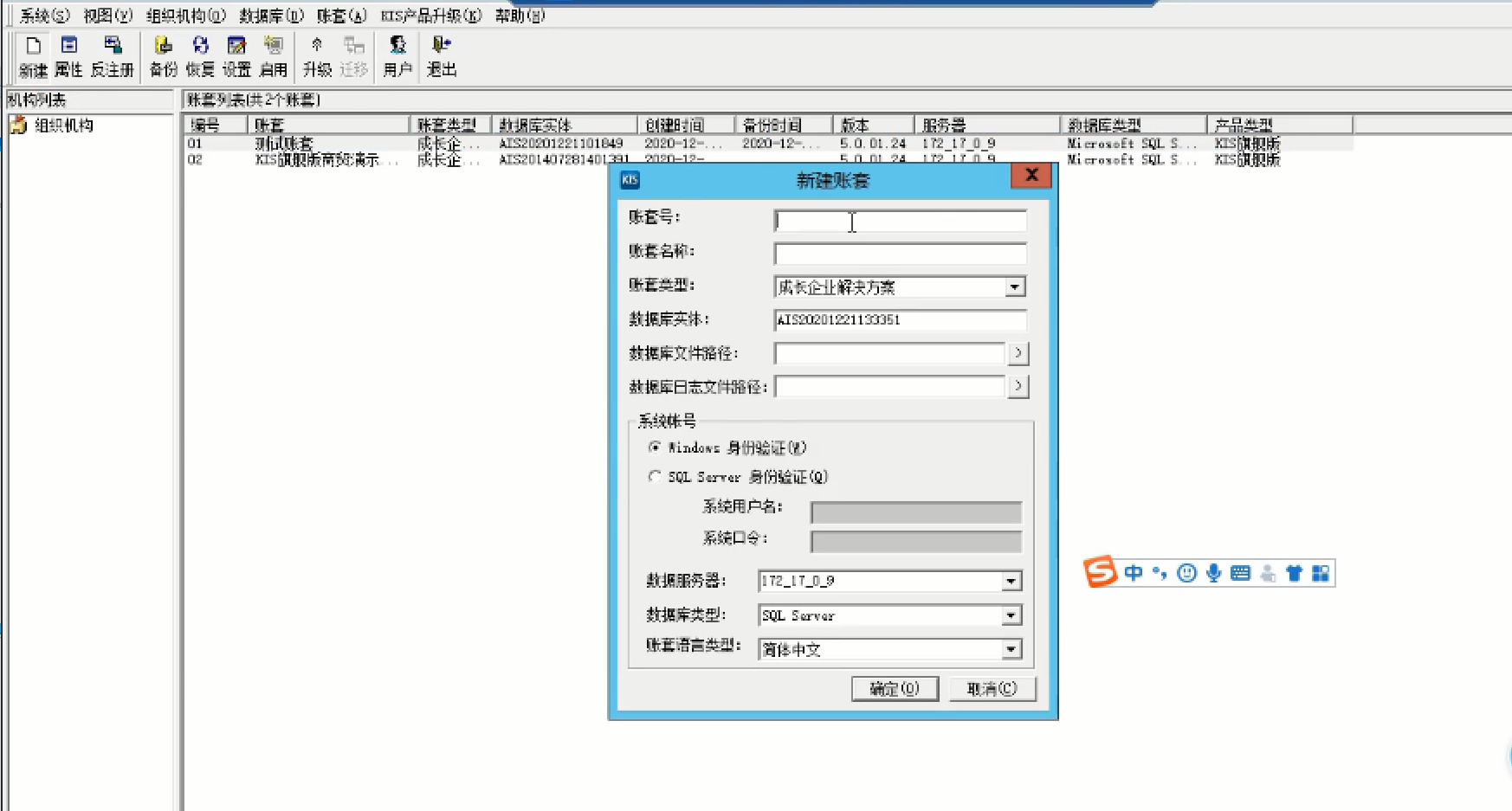 • 金蝶K3新建账套