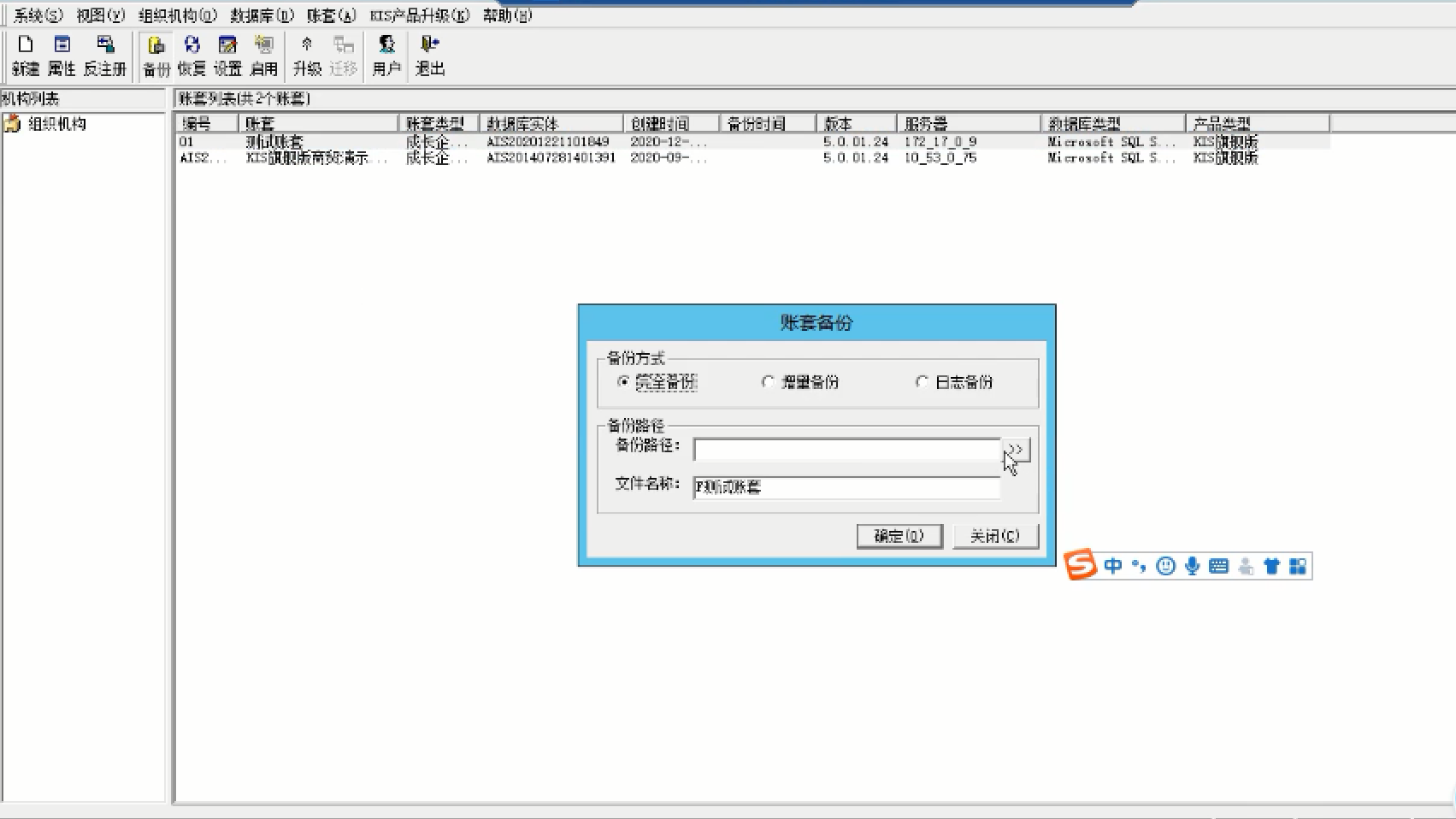 • 金蝶K3备份账套