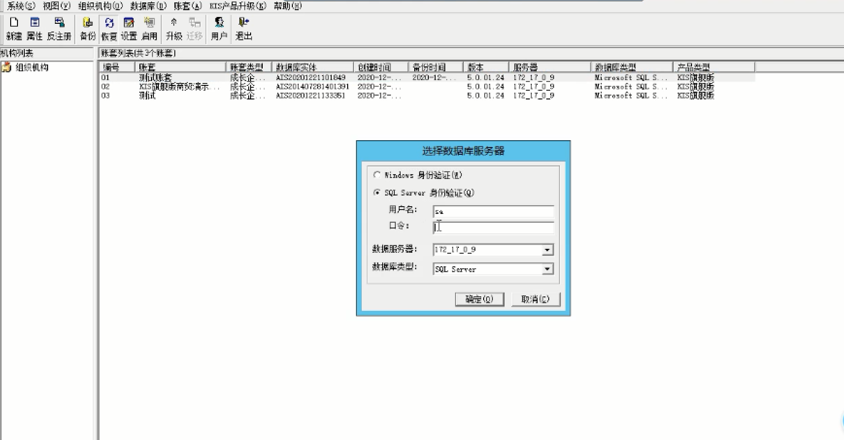 • 金蝶K3恢复账套