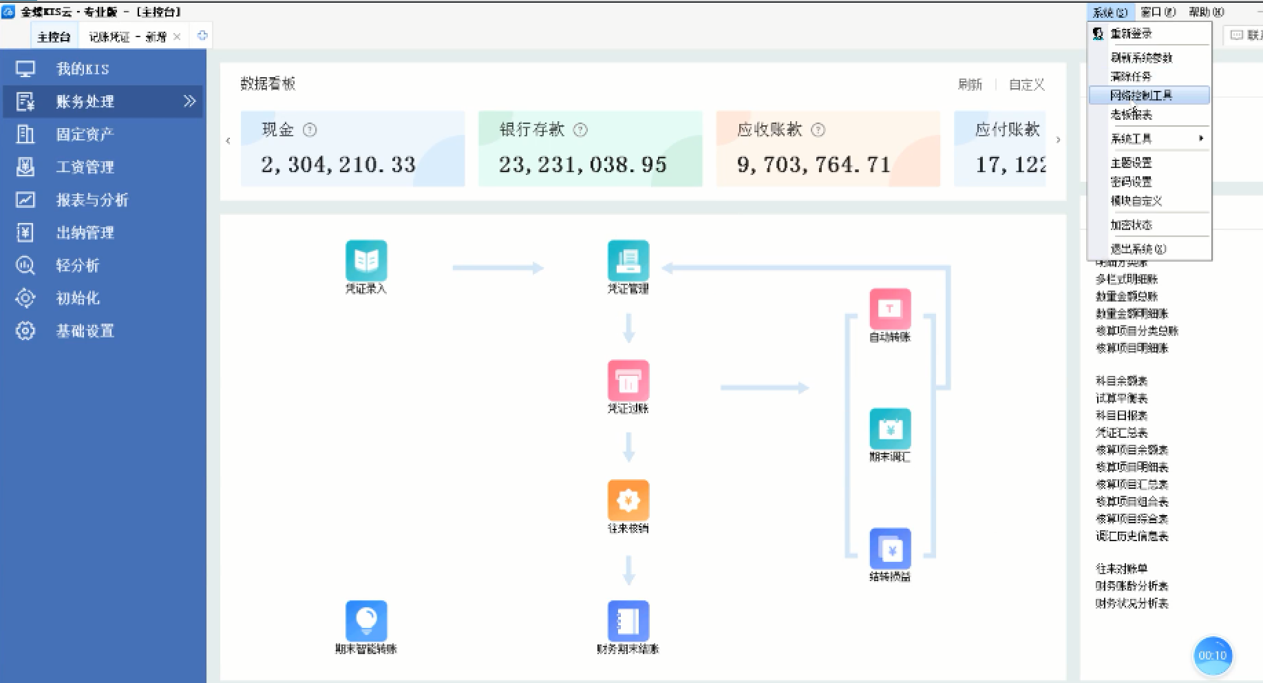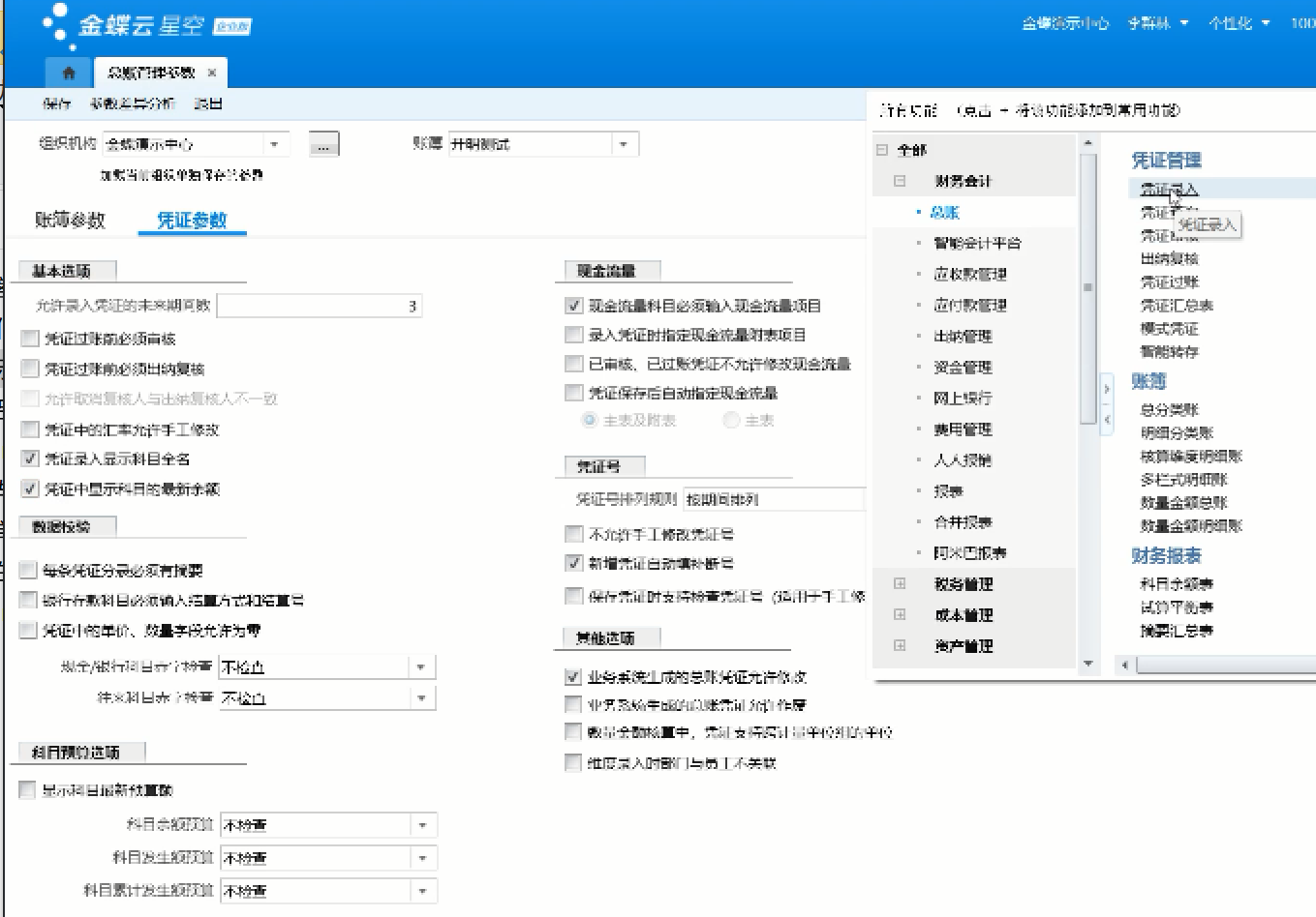 • 金蝶云设置模式凭证