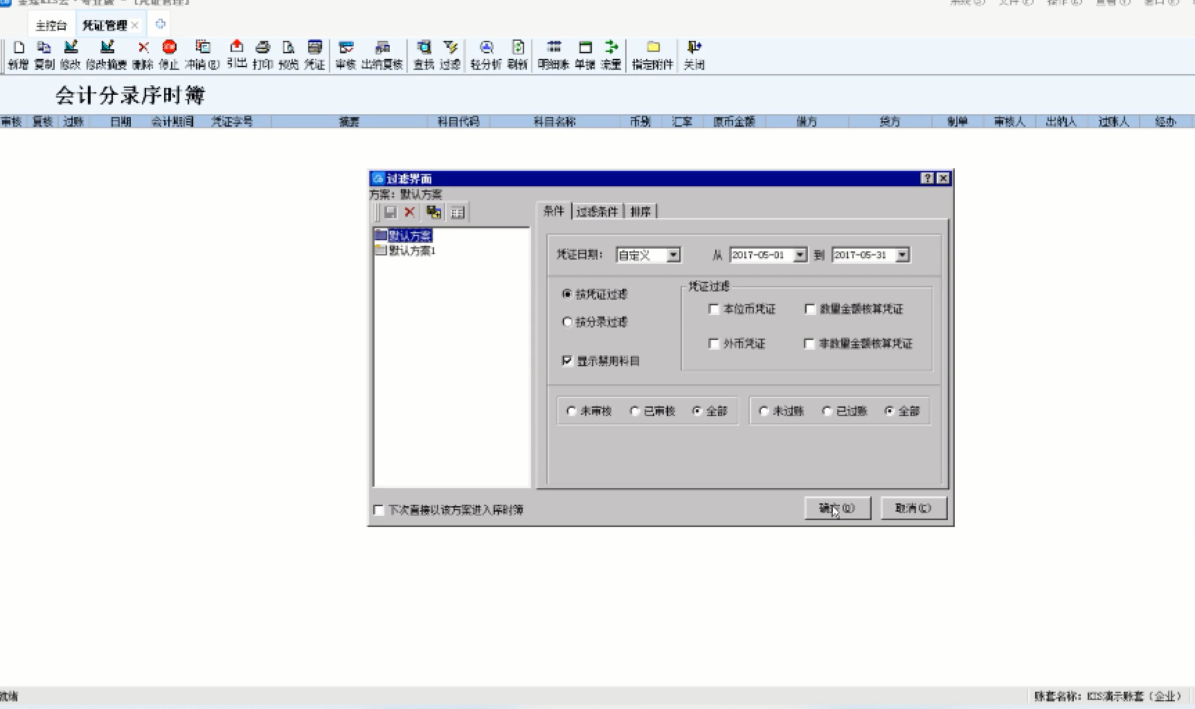 • 金蝶K3序时簿过滤字段设置