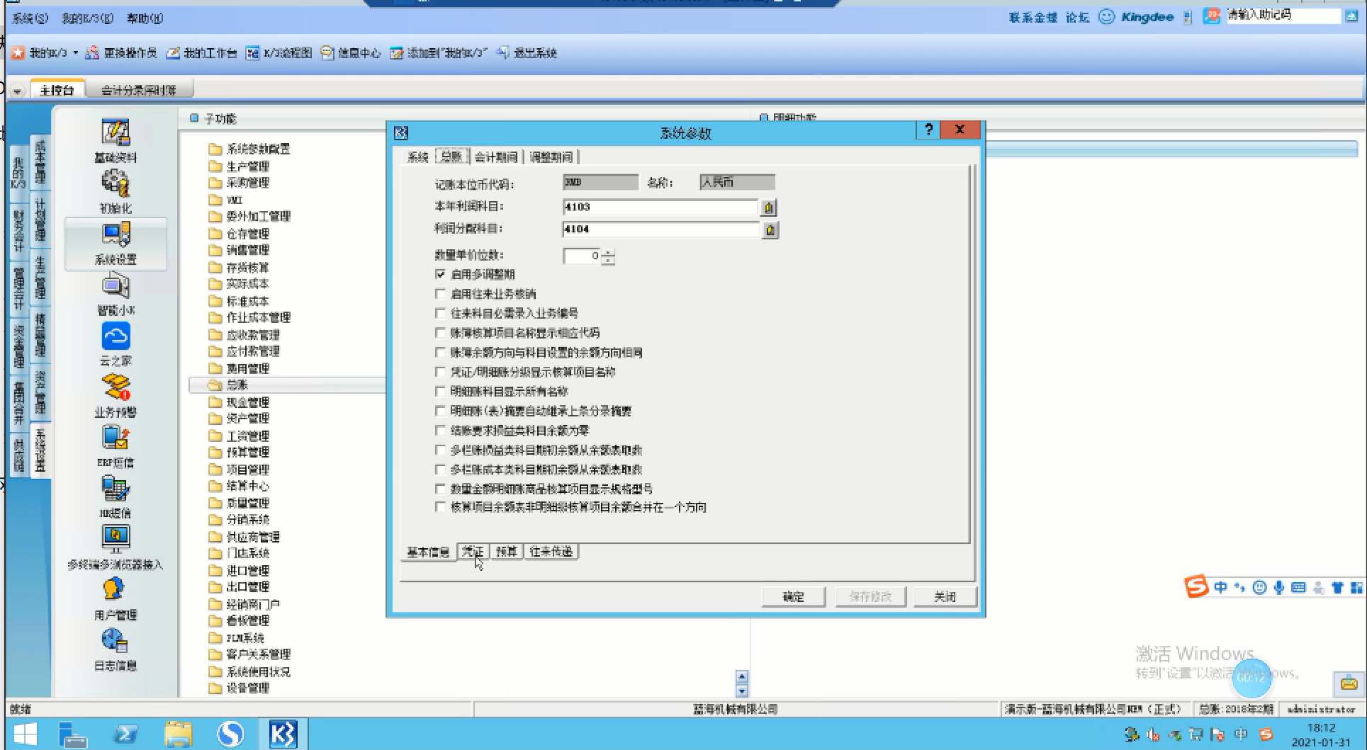 • K3本年利润利润分配参数设置
