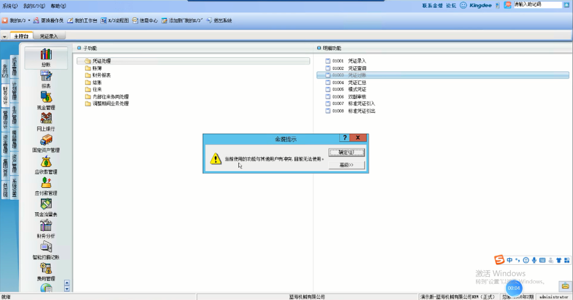 • 金蝶K3提示用户冲突